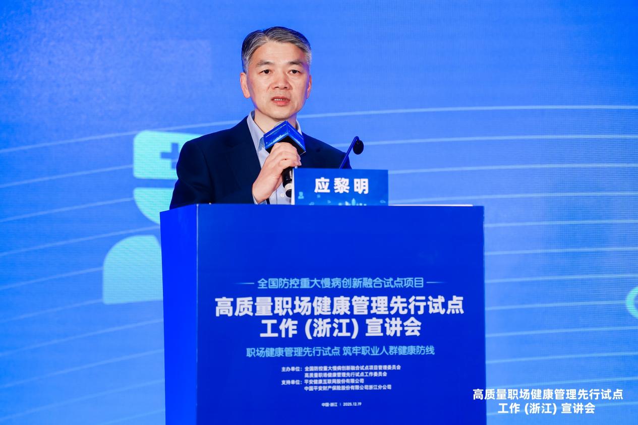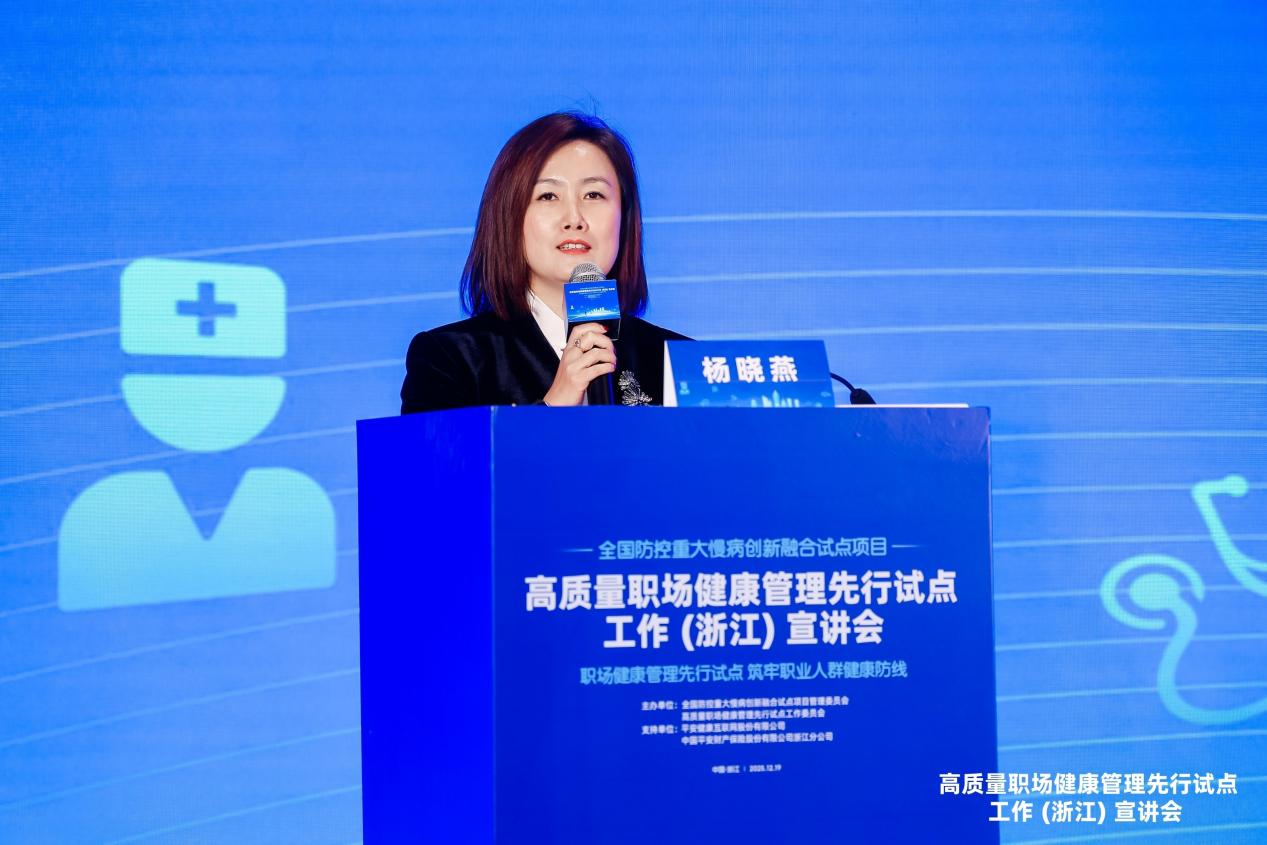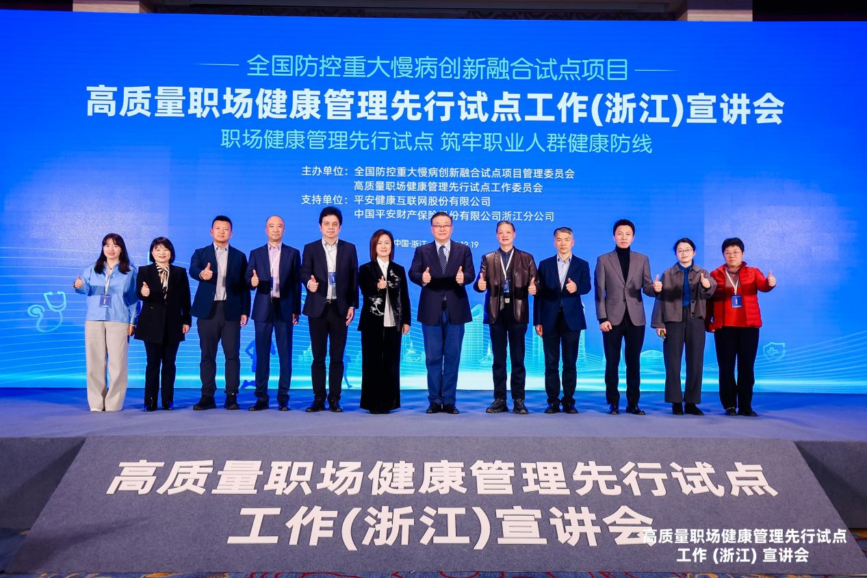 2025年12月19日,“全国防控重大慢病创新融合试点项目”高质量职场健康管理先行试点工作(浙江)宣讲会在杭州召开,共有来自90余家企事业单位的100多名代表参会。会议由全国防控重大慢病创新融合试点项目管理委员会、高质量职场健康管理先行试点工作委员会主办,平安健康互联网股份有限公司、中国平安财产保险股份有限公司浙江分公司支持。