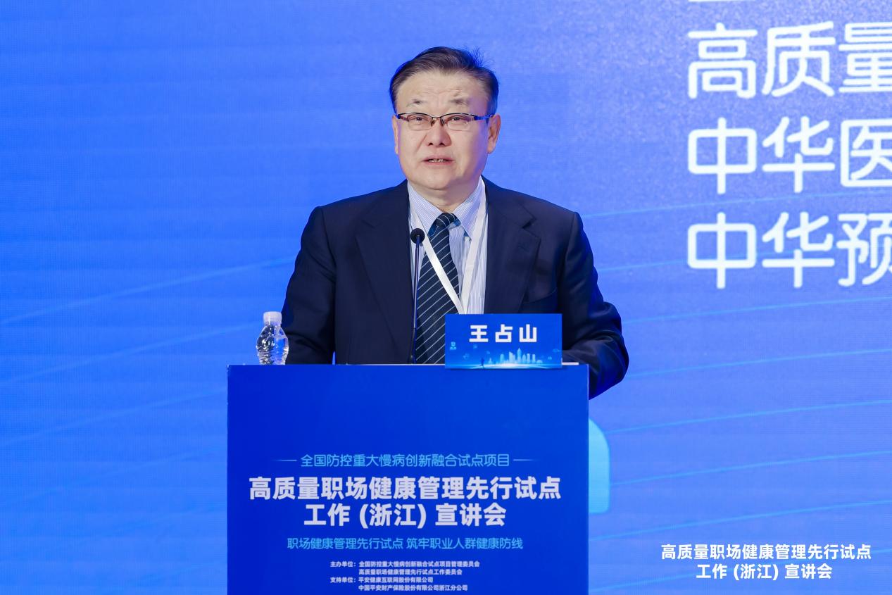全国防控重大慢病创新融合试点项目管委会秘书长、高质量职场健康管理先行试点工作委员会秘书长、中华医学会健康管理学分会第一-五届常委兼第五届秘书长、中华预防医学会慢病防控分会常委王占山教授;宁波市卫生健康委二级巡视员兼市保健办主任、中华医学会健康管理学分会委员应黎明教授;平安健康互联网股份有限公司B端事业中心总经理兼平安好医投资管理有限公司总经理杨晓燕女士;中国平安财产保险股份有限公司浙江分公司副总经理周建毅先生等嘉宾出席,与会现场,超百余位浙江(杭州)各机关、企事业单位代表参会。